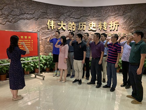 来到八七会议会址,大家感知历史,缅怀先烈,不忘初心,在八七会址纪念馆大厅的党旗前重温入党誓词。
